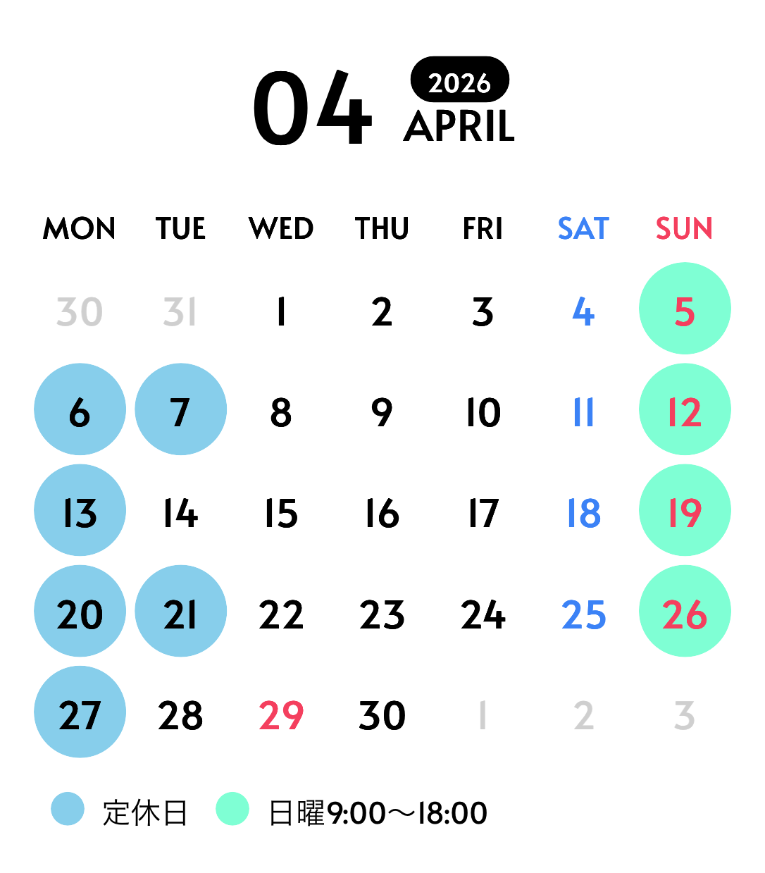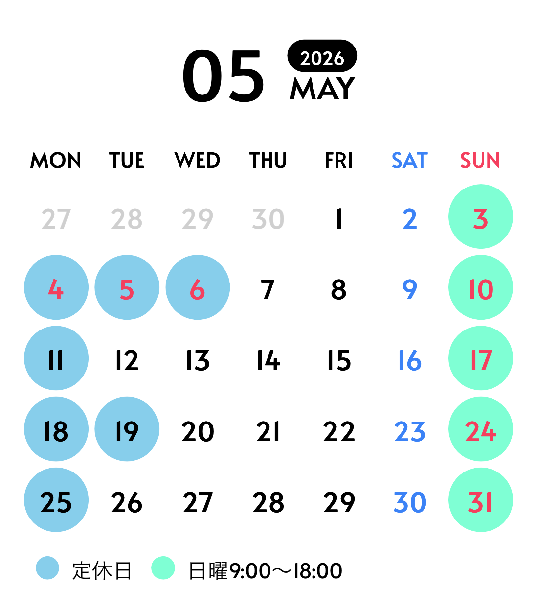 2026年4月2日 5月の定休日とGWの営業の営業のお知らせ
